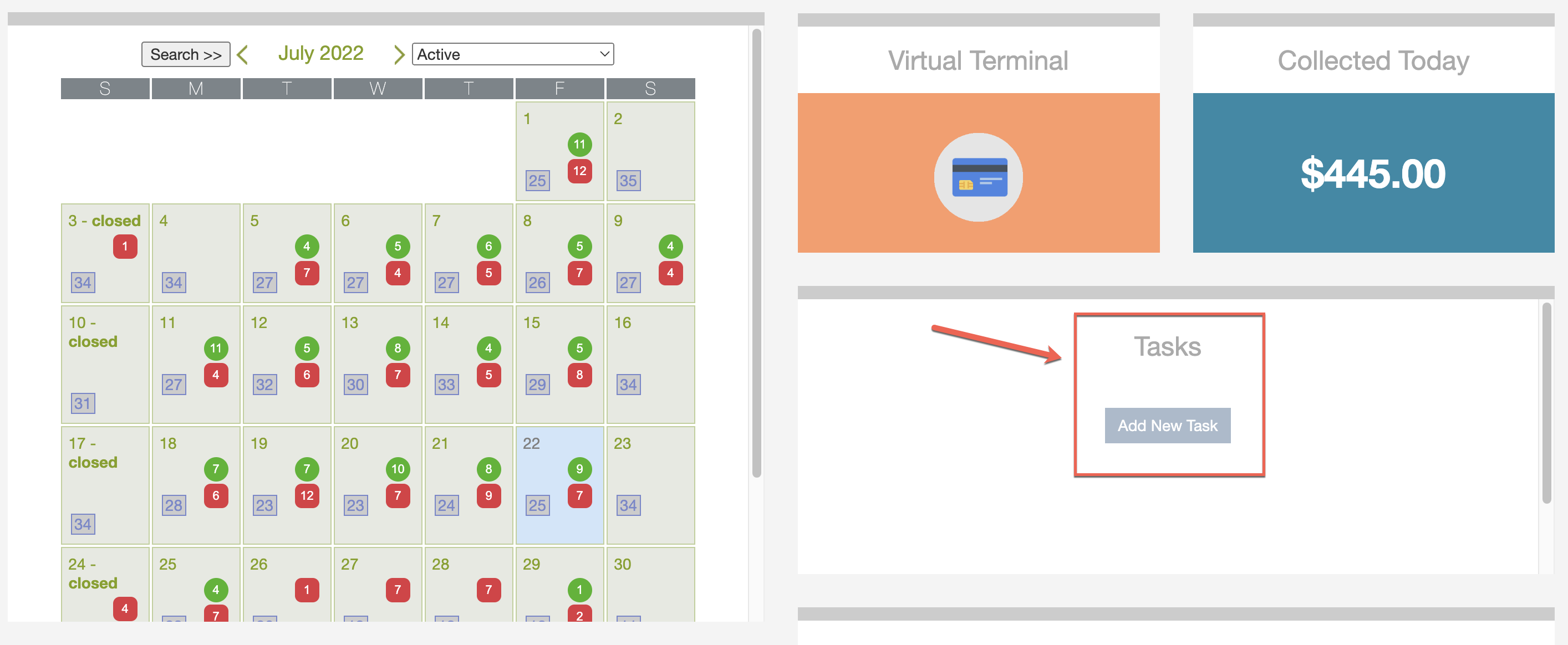 On the "Home" screen of the Control Panel, you can create and assign various tasks, either as a reminder for yourself or as a direction for an employee.