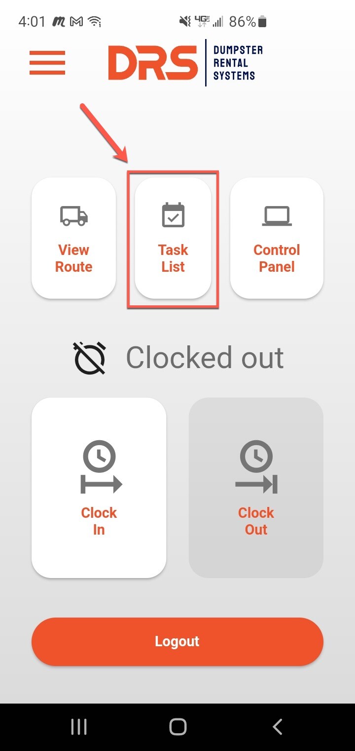 Employees can see their tasks by pressing the "View Tasks" button in the DRS Driver App: