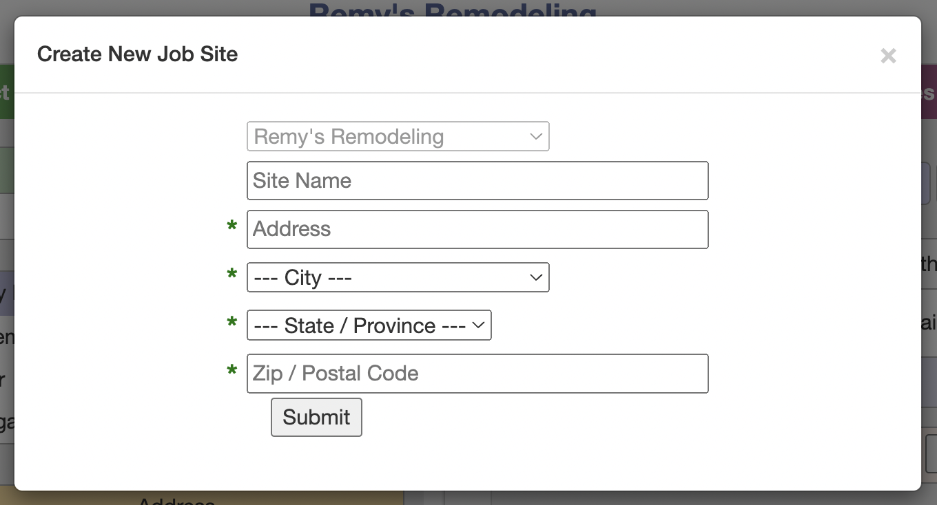 Click "Add" to add a new Job Site to this company's profile. Once all the information is entered, click "Save".