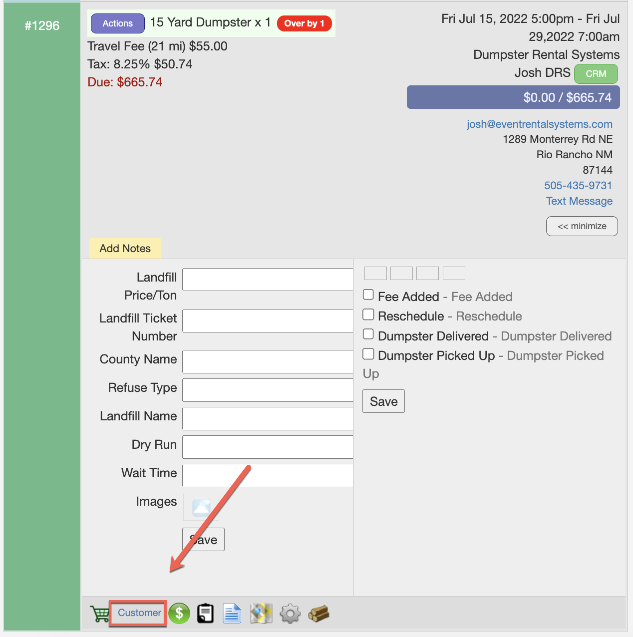 To modify an existing order, click "expand >>" on the order from the Dispatch screen and click the the blue "Customer" link.