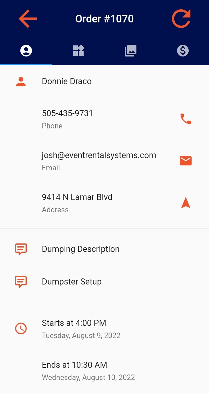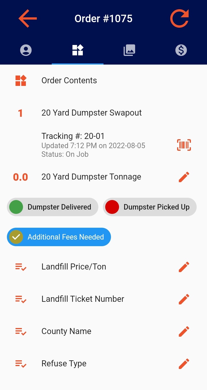 • Within orders (Tap the "Basket Icon"), you have several options including entering in tonnage, assigning tracking numbers, taking payment, signing the contract, using order checklists to communicate with the Control Panel, and more!
