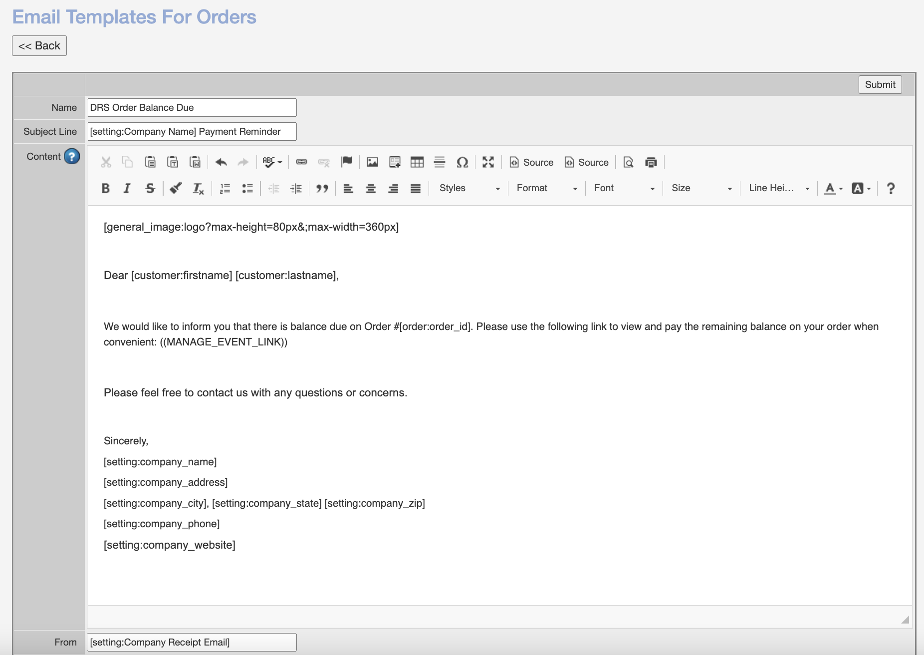 DRS has added the ability to send email templates directly from the "Dispatch" screen, “Open Accounts” Report, “Unsigned Orders” Report, and more. Most email addresses in the Control Panel are clickable links for sending templates.