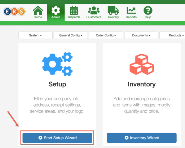 1. Navigate to "Admin" and click "Start Setup Wizard":
