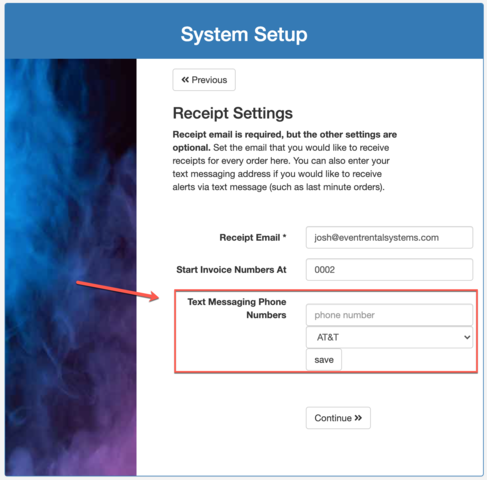 2. Click "Receipt Settings" to access the text messaging alerts area.