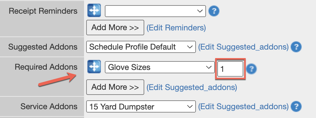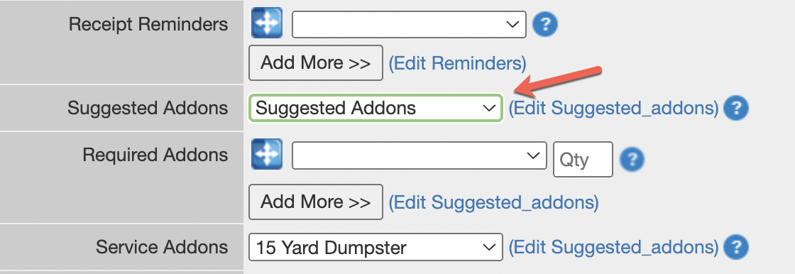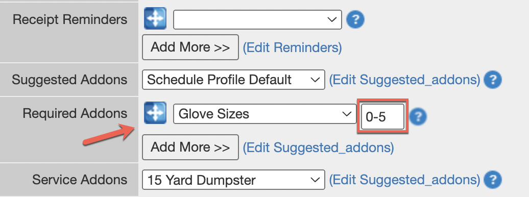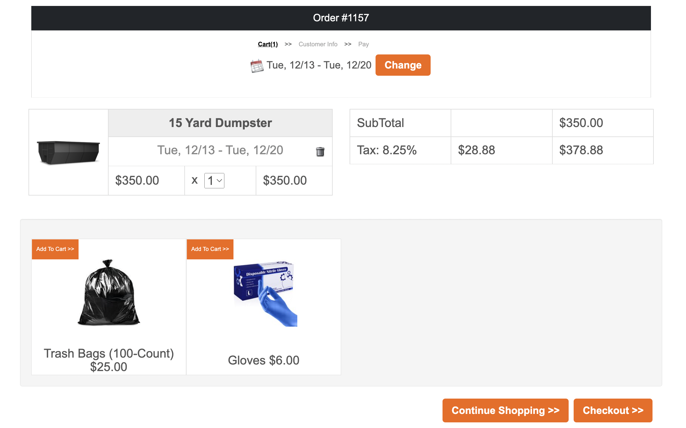 Here is an example of a Suggested Add-on selling gloves and trash bags. When someone orders a dumpster, the recommendations appear at the bottom: