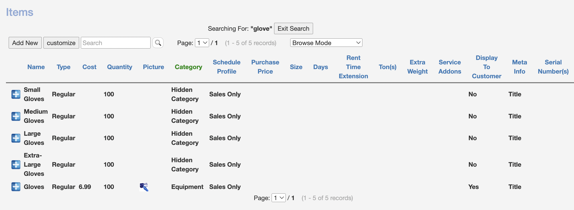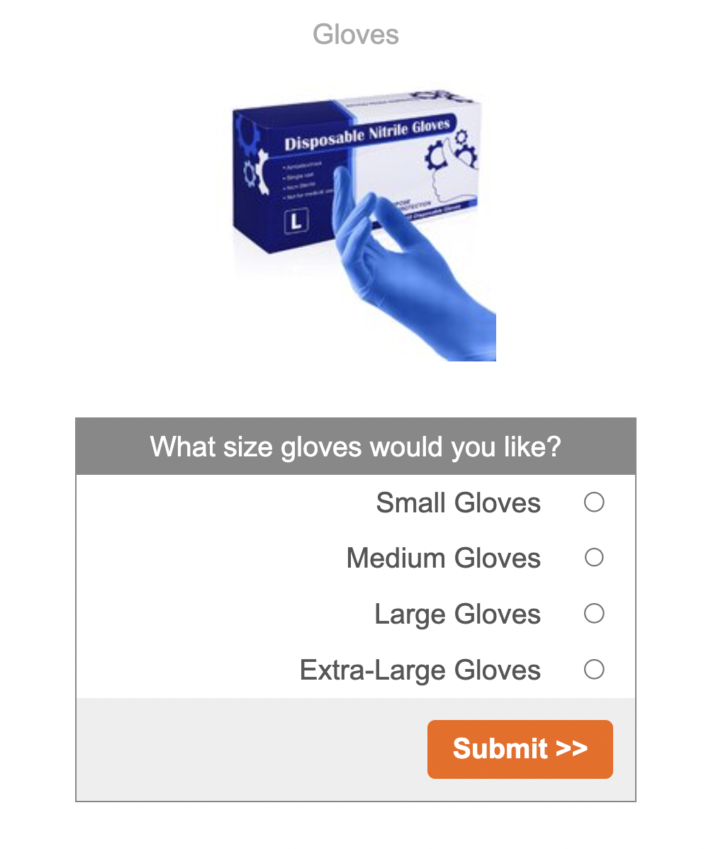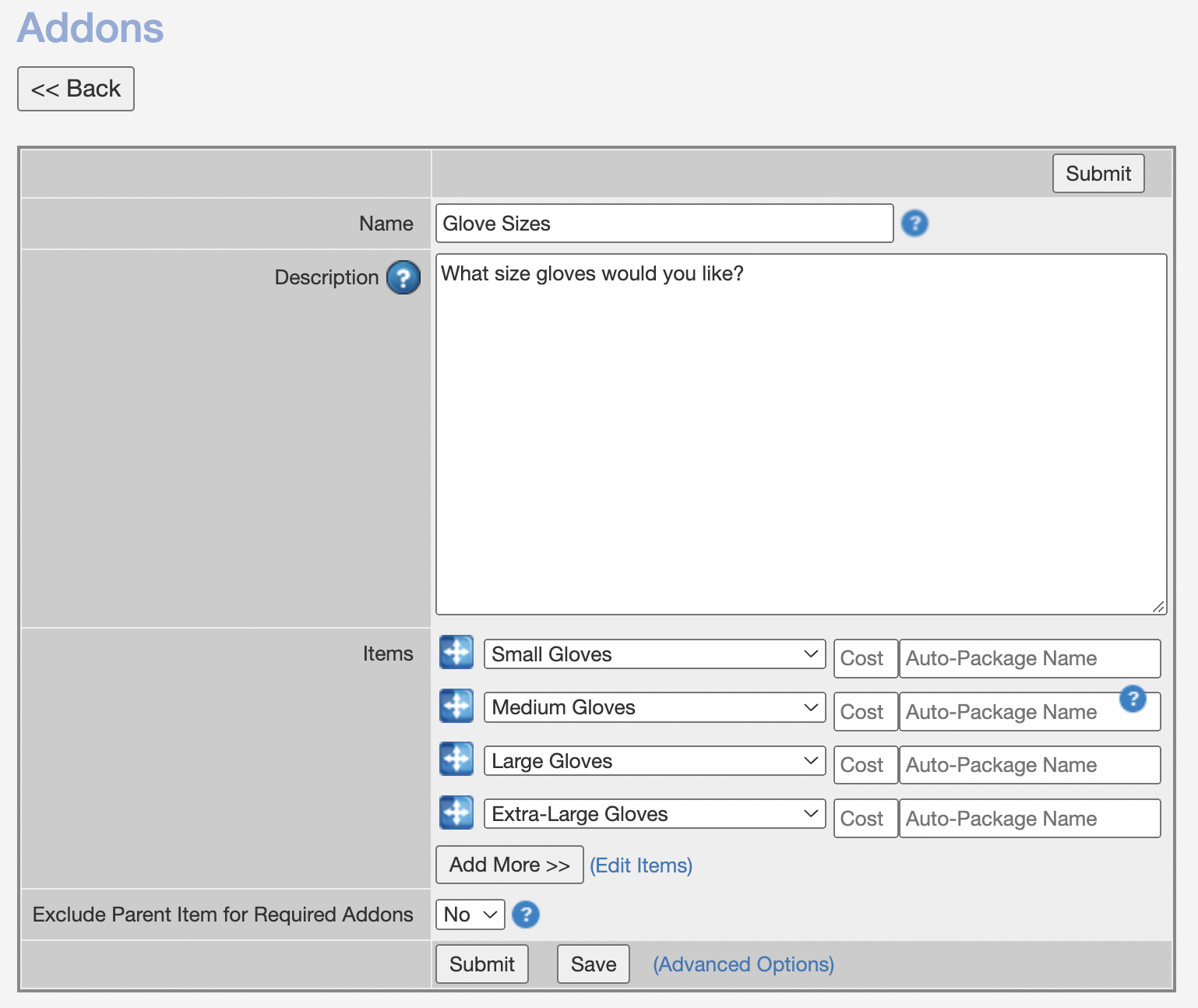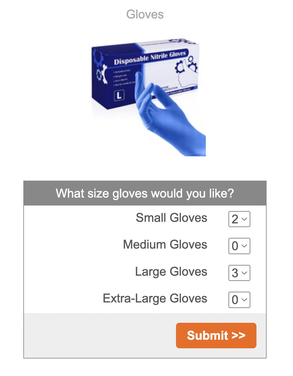 Here is an example of a Required Add-ons. In this scenario, I carry 4 different sizes of gloves and the customer must make a selection when that item is added to the Cart.