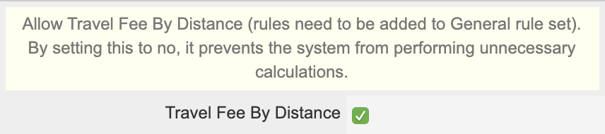 Select “Allow Travel Fee by Distance” in the dropdown box.