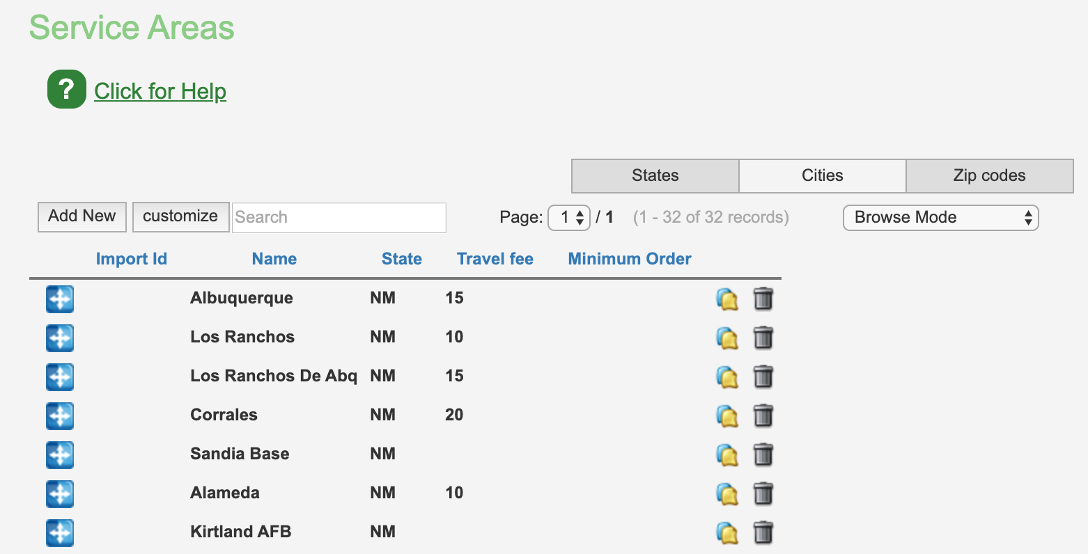 Note: Travel Fees in the “Zip codes” area override travel fees in the “Cities” area.